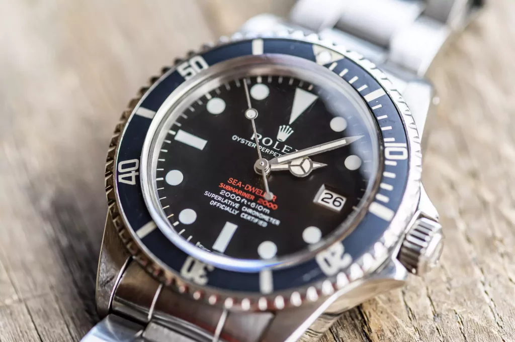 Besonders interessant im Rolex Uhrenankauf ist dieses Modell mit der Referenz 1665 in Stahl. Der „Double Red MK2 Chronometer“ ist eine der letzten „Thin Case“-Uhren aus der dritten Fertigungscharge, also eine echte Seltenheit und dadurch sehr beliebt bei Sammlern.